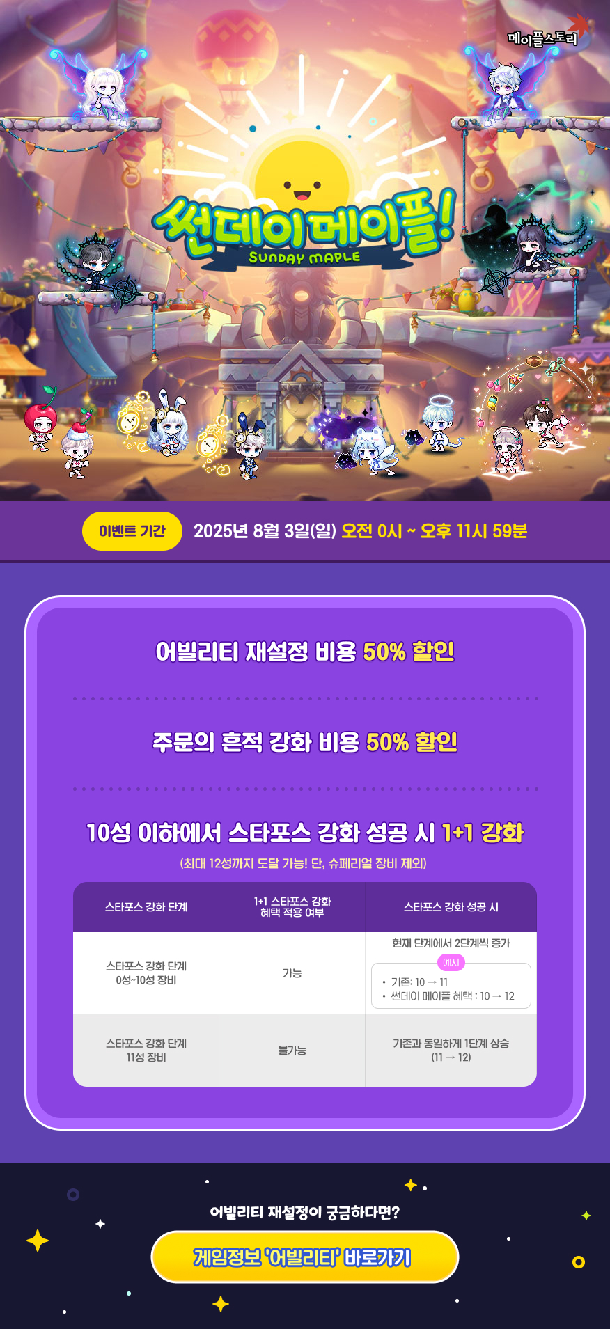 [썬데이 메이플] 8월 3일 썬데이 메이플 정보